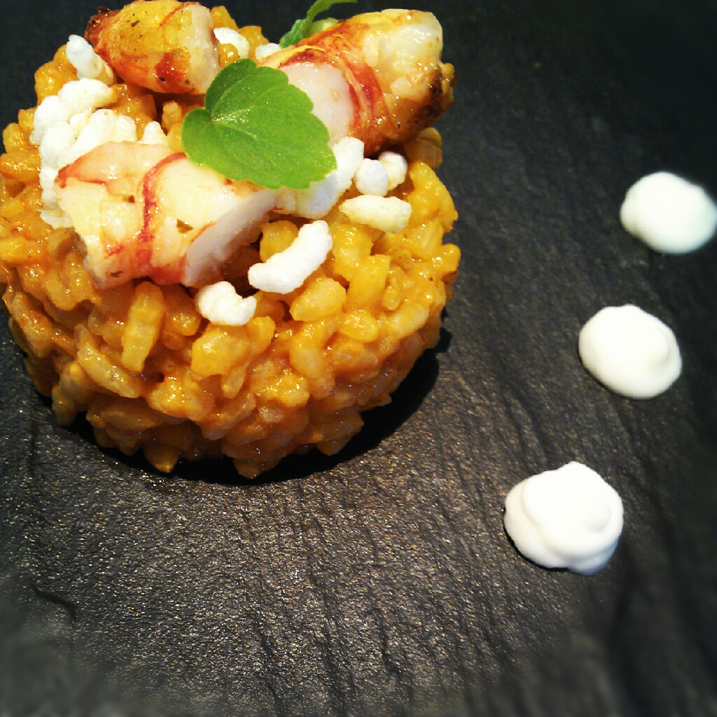 El arroz cremosos pero suelto, acompañado de un toque de mahonesa de ajo y un carabinero a la plancha coronandolo hace que este pintxo no defraude. Es un valor seguro, sin riesgo y muy acertado.