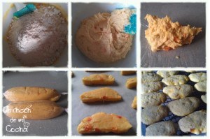Sacaremos la masa del frigorifico y pondremos pequeñas porciones en una bandeja con papel de hornear. Cocinaremos con el horno precalentado a 180 grados unos 12/15 minutos siempre dependiendo el grosor.