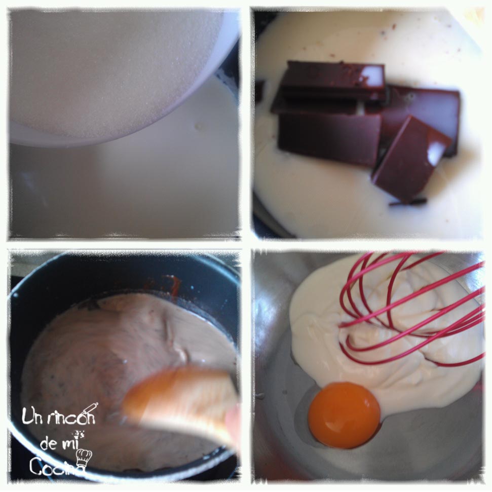Por otro lado mezclaremos la yema de huevo con el yogurt Griego. Juntaremos la mezcla y cocinaremos a fuego suave sin que llegue a hervir durante unos 5 minutos. Apagaremos el fuego,  lo echaremos a un recipiente y cuando se haya templado dejaremos un par de horas en el frigorífico. Y estareis pensando que hay que estar mucho tiempo en la cocina, si os vais a tomar algo o dar una vuelta y lo dejais mas tiempo en el frigo no pasará nada.