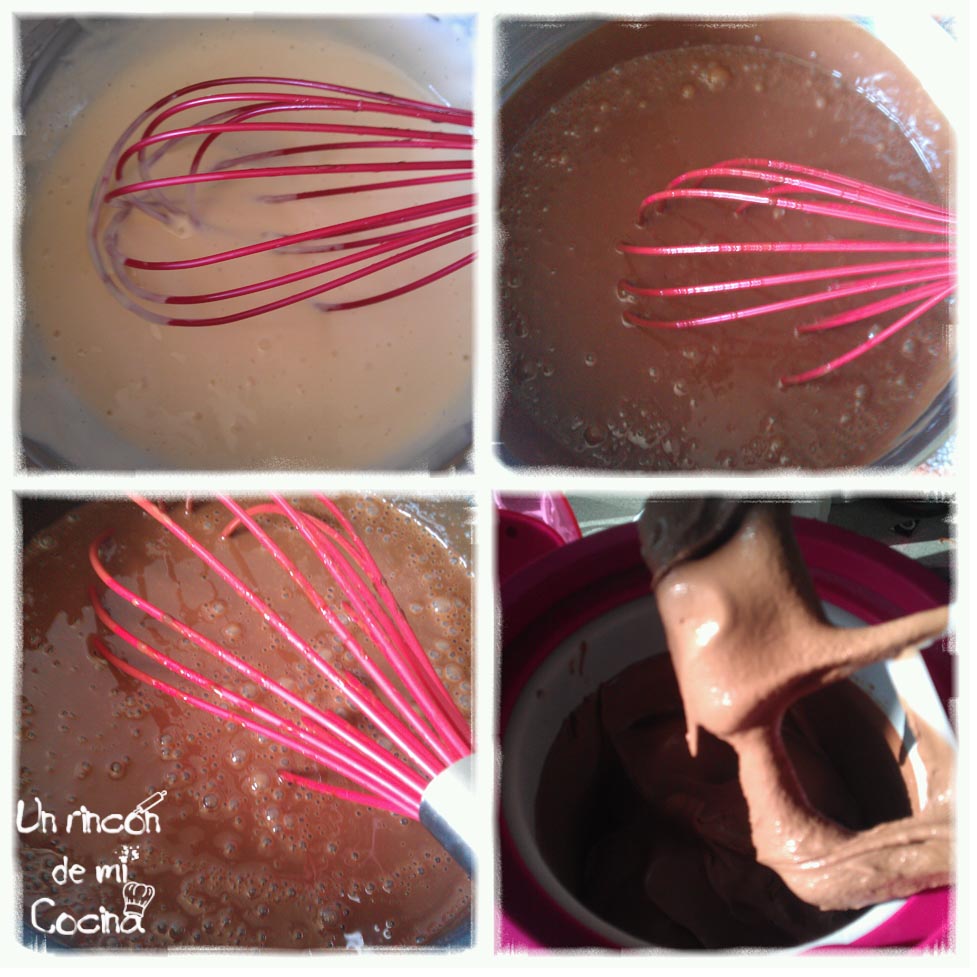 Una vez esté bien frío, montaremos la heladera con la cubeta previamente congelada y en unos 20 minutos los tendremos. Una vez hecho lo guaradremos en un recipiente de plástico bien tapado en el congelador.