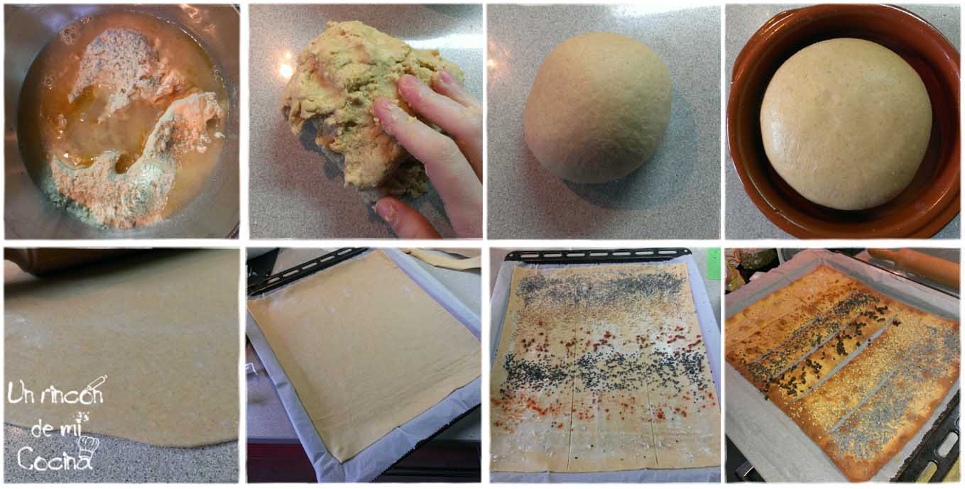Ayer también hacía un día de perros, después de haber editado un par de recetas para CocinARTE decidí leer un rato, el caso es que me encontré con ésta receta en el libro Aprendiz de panadero y me pareció una buena manera de pasar la mañana y de dejar algo especial preparado para la cena. Cada vez que alguien me dice que planchar le relaja no lo entiendo pero quizás otros tampoco puedan entender que a mi amasar me relaja y la verdad es que ayer tuve una mañana de lo mas Zen. Había dejado de amasar porque no era capaz ni de concentrarme pero he decidido que pese a mi, lo que pase pasará. El mundo no se para y sigue girando. He decidido luchar, si no es por mi será por los que me rodean. Así que volví a amasar, a disfrutar de lo que me gusta y encima descubrí un pedacito de otra cultura que es de las cosas que más me llenan.