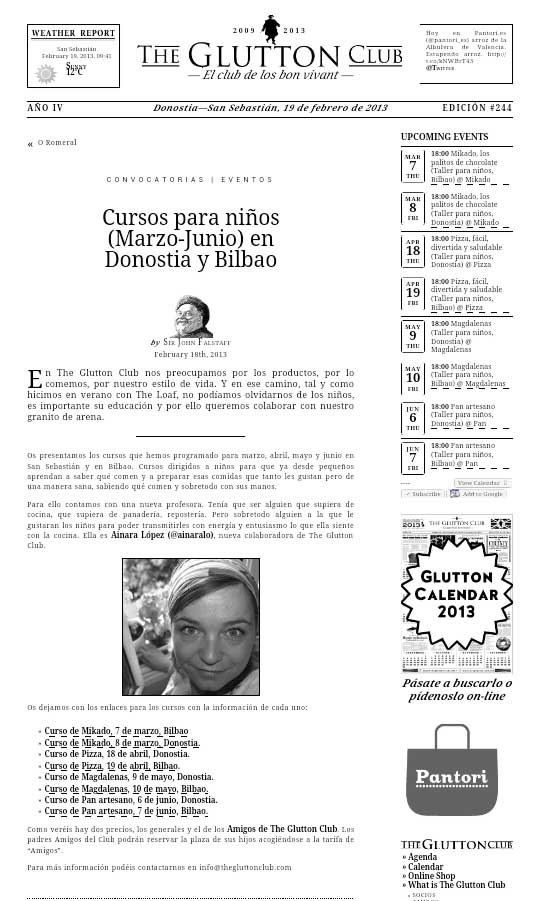 Hoy no os traigo ni una receta ni una historia en especial, os traigo una propuesta para los más pequeños de la casa. Para que los pequeños aprendan a comer bien y a saber de dónde vienen las cosas es muy importante que se metan en la cocina y para eso hemos organizado unos cursos muy interesantes para ellos. Cocinar pero esas cosas que les gustan a ellos, Mikados, pizzas, magdalenas y panes de eso van a tratar estos cursos. Impartidos por una servidora, en Euskera y castellano, para todos los gustos.