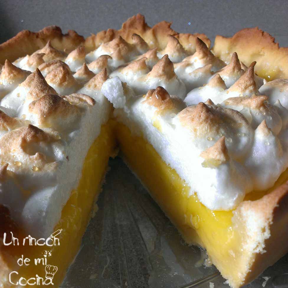 Para montar la tarta, dispondremos la crema en la parte inferior para luego poner la crema de limón encima, extenderla con cuidado de que no se mezclen. Por último decoraremos con el merengue. Hornearemos a 220 grados hasta que se empiece a dorar, unos 10/15 minutos será suficiente.
