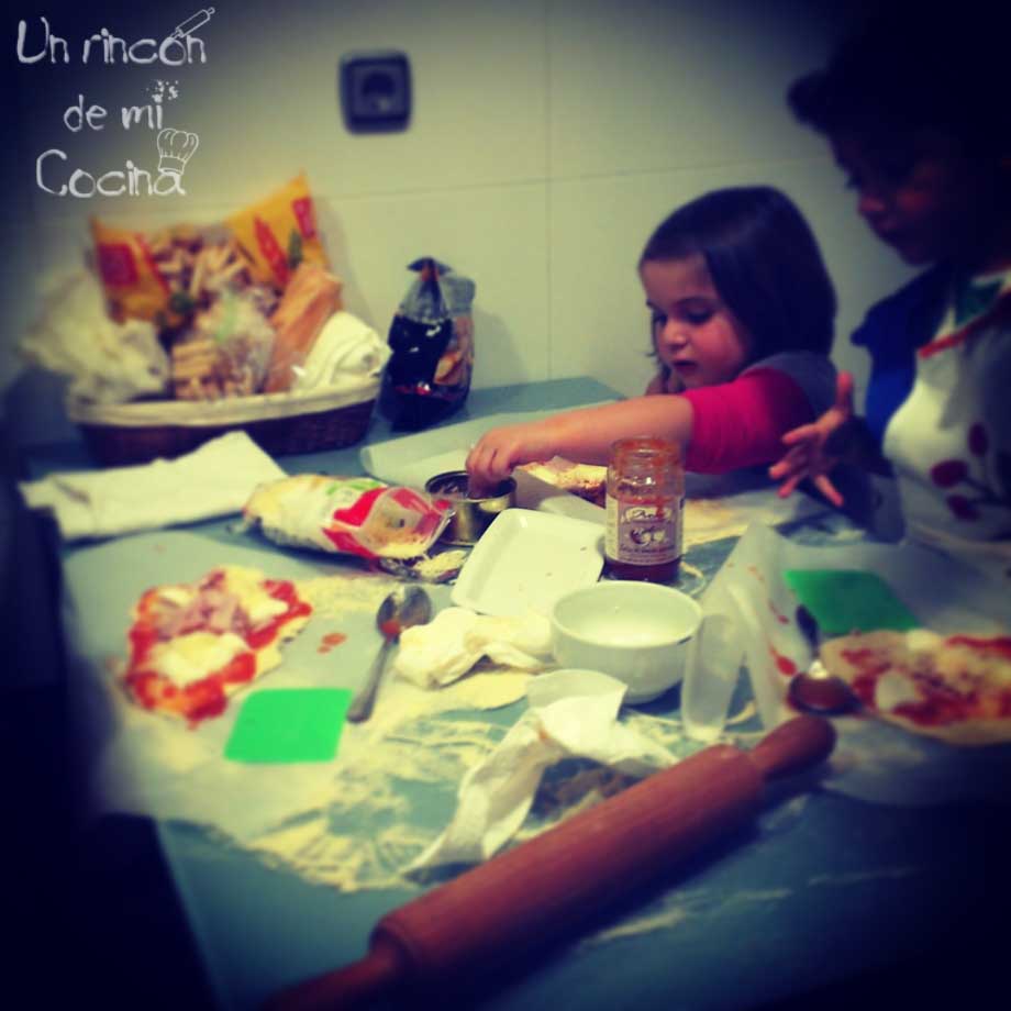Este fin de semana hemos celebrado el cumple de Laia y una de las celebraciones en las que vinieron sus amigos a casa los puse a prepararse sus propias pizzas, el disfrute fué máximo y esas caras de satisfacción por el trabajo bien hecho toda una gozada. Tenéis que animaros a cocinar con ellos y esta es una muy buena receta, los metéis en la cocina con un delantal y que se manchen que para eso están las lavadoras.