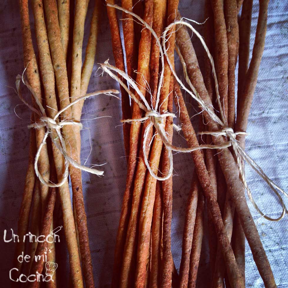 Pasado ésta media hora desgasaremos y aqui viene el trabajito, si tenéis pequeñajos en casa seguro que se les da a las mil maravillas esto de hacer churritos, tenéis que intentar que os queden finitos para que luego el resueltado sea crujiente. Estiraremos la masa con rodillo, cortaremos tiras de menos de un dedo de ancho y con la ayuda de las dos manos iremos formándo churritos. Los iremos poniéndo en la bandeja de hornear con papel para horno, los hornearemos a 200º unos 12/15 minutos, mucho cuidado que se queman con facilidad. Una vez las saquemos del horno las dejaremos enfríar sobre una rejilla.