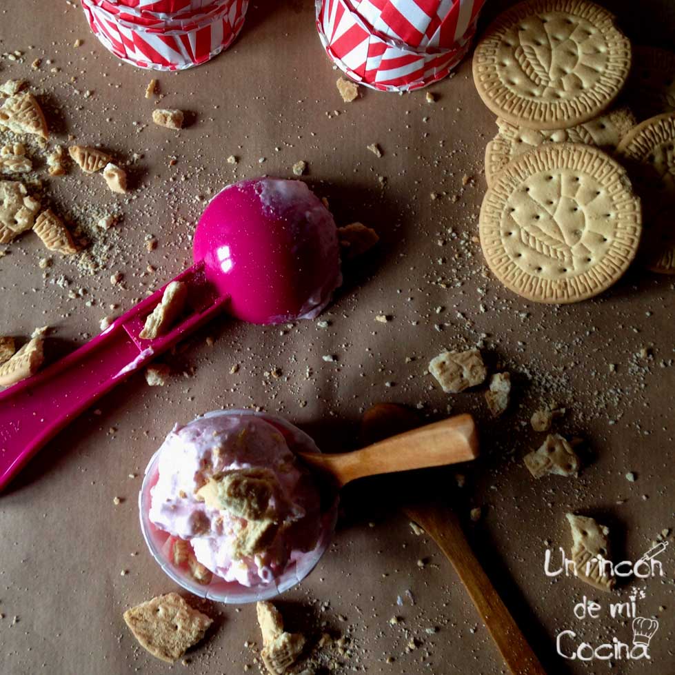 Este helado es idóneo para acompañarlo de galletas en trocitos simulando una tarta de queso.