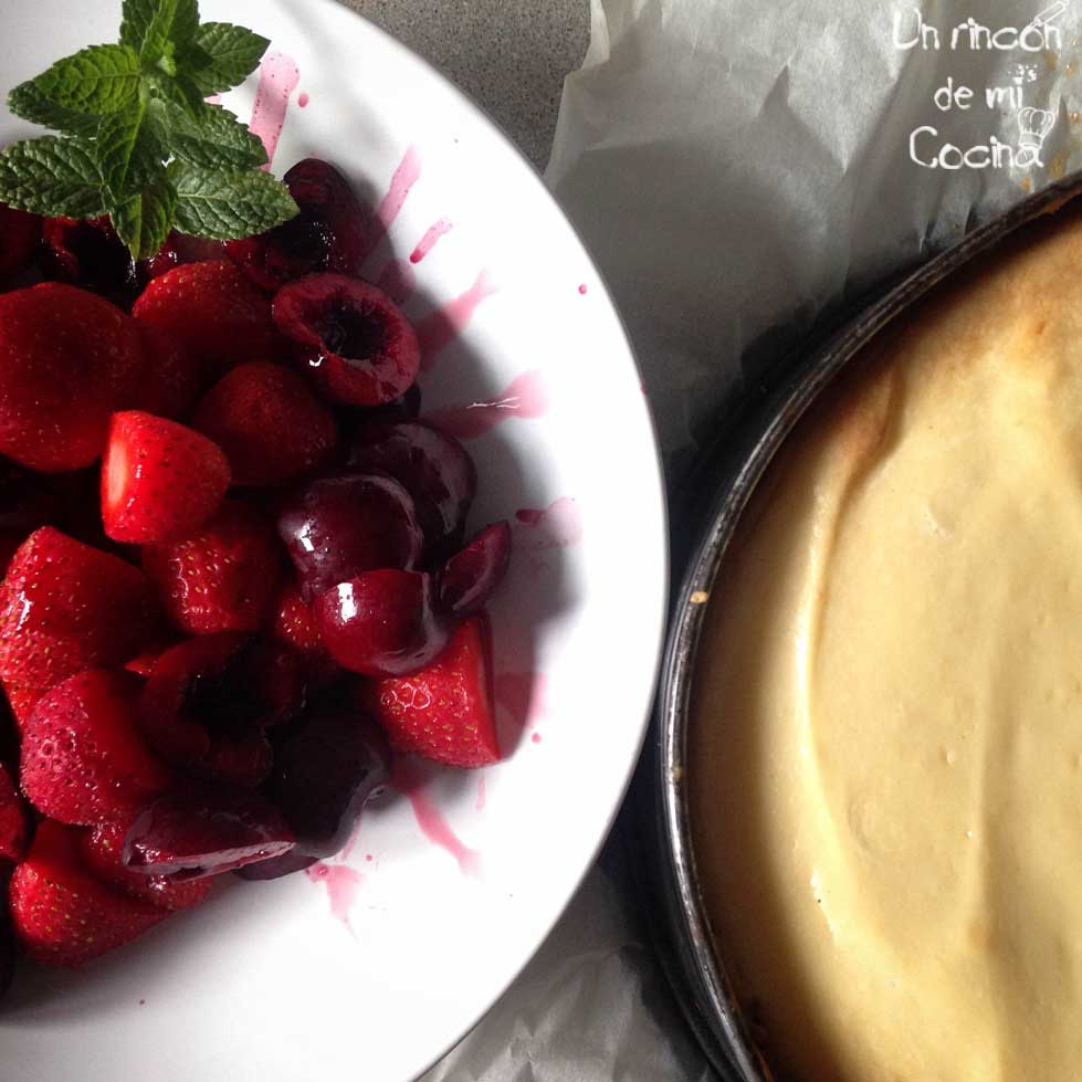 A continuación echaremos el queso, la crema fresca, el limón y su ralladura, el azúcar y la media vaina de vainilla (bueno, su interior) en un cuenco grande y empezaremos a batir con la batidora de barillas. Cuando tengamos una masa homogénea empezaremos a echar los huevos uno a uno sin dejar de batir, cuando estén bien integrados añadiremos la harina. La mezcla resultante la echaremos en el molde con el fondo de galletas. Hornearemos a 160 grados 20 minutos y a 150 grados 45 minutos más. Sacaremos y dejaremos templar antes de meter en frigo, os recomiendo que pase la noche en el frigo antes de degustarla.