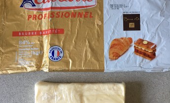 La mantequilla que yo uso es de Elle&Vire Professional del 84% de m.g. Este dato es muy importante, al ser una mantequilla mas seca el hojaldrado quedará mucho mejor, además el sabor de ésta mantequilla es excepcional. También tened en cuenta que os vais a dar un currelo serio, así que hay que intentar hacerlo lo mejor posible. No es fácil de encontrar, yo la compro en llenatudespensa.com.