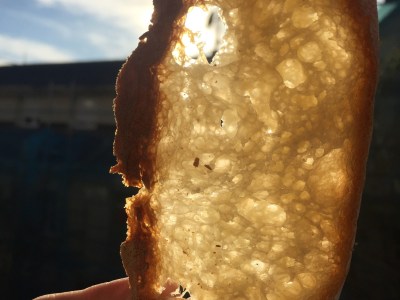 Horneado: 240 grados 15 minutos con vapor y transcurrido ese tiempo o quitar la tapa de hierro o abriendo la puerta del horno para quitar el vapor que pueda quedar y a continuación seguiremos horneando a 220 grados unos 35 minutos.